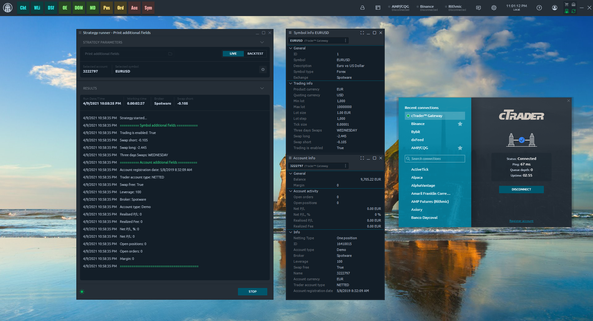 In this part of acticle we will create a strategy script which will show all additional fields of selected symbol and account. As example we will use cTrader connection.