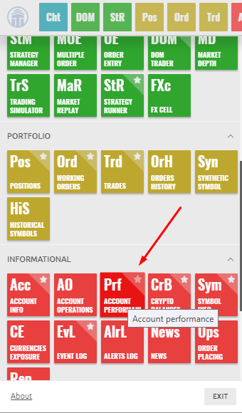 How to open the Account perfomance panel?