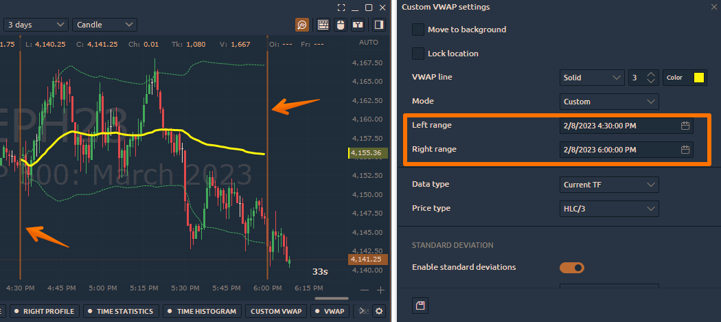 Left Range — defines the starting point for custom VWAP