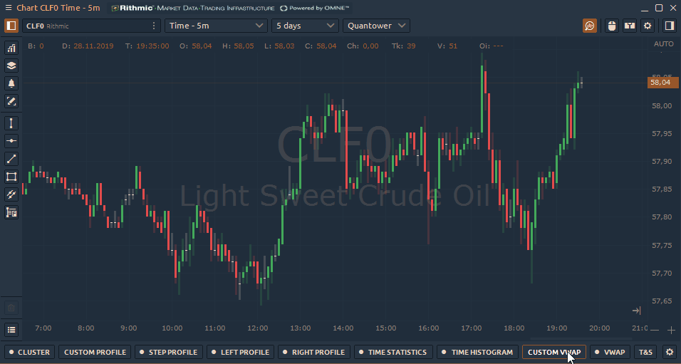 Data type — set the data for VWAP calculation: Ticks or Current TF. Ticks will use tick data for VWAP calculation and will take much more time for loading Current TF will use Bar data from the current selected Timeframe of your chart. It will use Price type data and multiply it by Bar Volume.