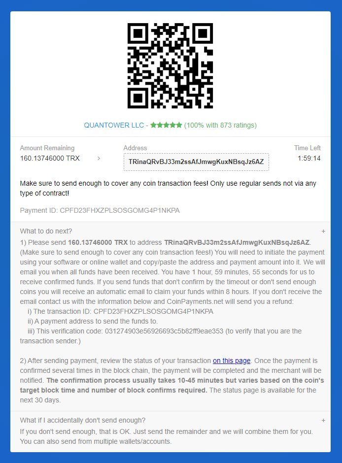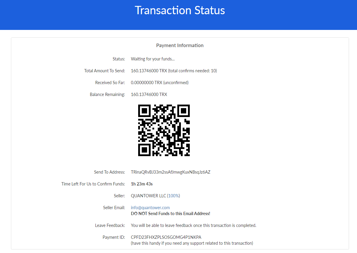 While the process of coins transfer between digital wallets is pretty usual and straightforward, we decided to mention some additional aspects of Quantower license purchase using crypto coins.