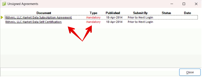 4) For new users, please make sure to sign two agreements first. You can easily do this in the Rtrader Pro platform.
