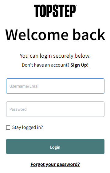 Once you have paid, please log in to your personal account on the Topstep website using the login and password you provided during the registration process.