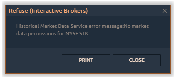 In order to receive market data for charts and quote lines within Quantower, it is necessary you are subscribed to the exchange that the Symbol is listed on. If market data is not subscribed, you will see error messages similar to the following: