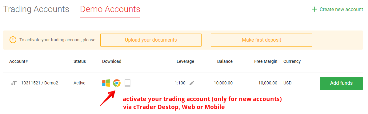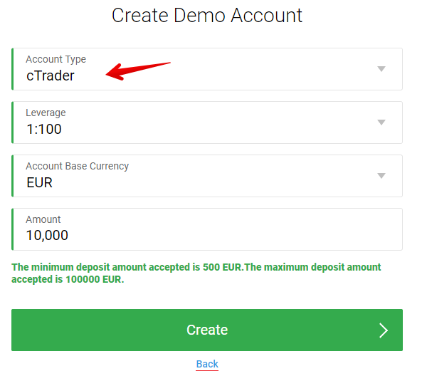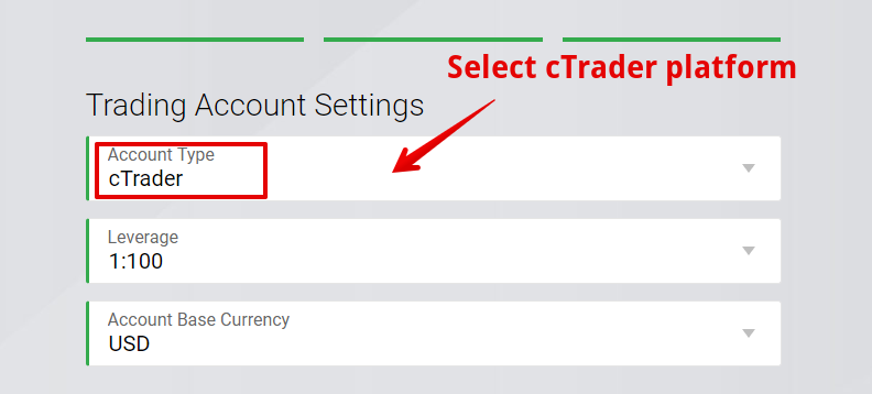 - Create a trading account by filling out the registration form. Demo and Real account are created under one cTrader ID, therefore there is only one form for opening an account.During the registration, always choose the cTrader platform where you need to specify it.