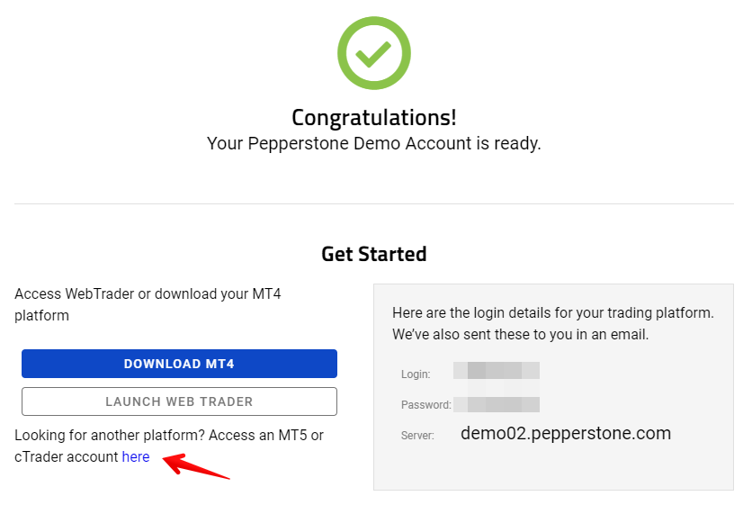 - After filling out the form and successful registration, you will be assigned a demo account number for MT platform. To connect Quantower to Pepperstone broker, you must create a demo for cTrader.