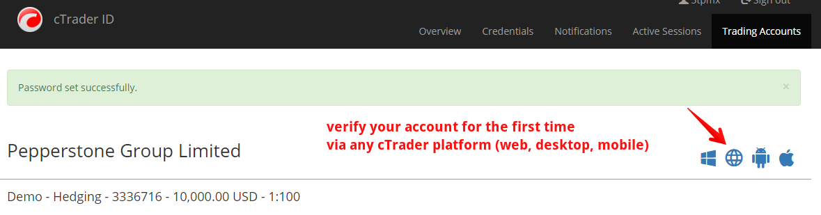 Before connecting for the first time through Quantower platform, you need to activate your account in the cTrader system. You can do it via Pepperstone cTrader Web-based platform https://ct.pepperstone.com/