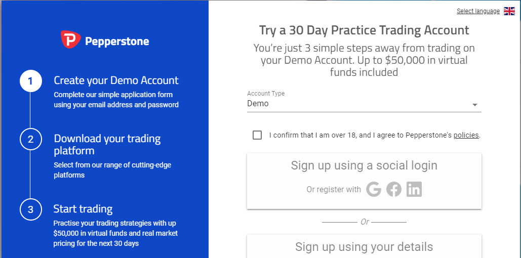 - Go to the official Pepperstone website and Create a trading account by filling out the registration form. Pepperstone provides a demo account for a period of 30 days.