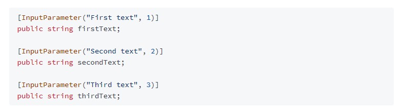 If you have a few input parameters and want to arrange them in an appropriate order, you can apply SortIndex parameter for each InputParameter: