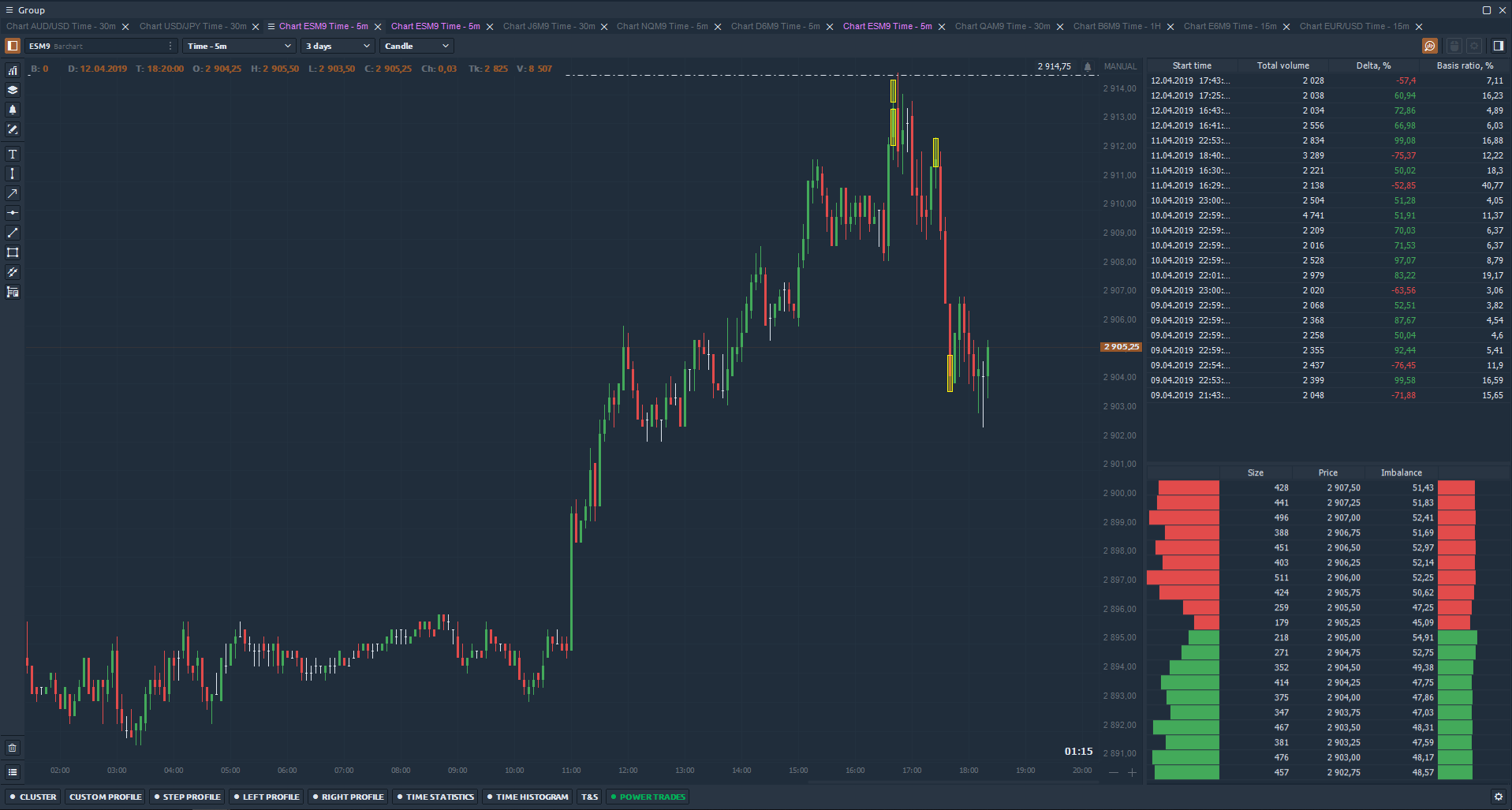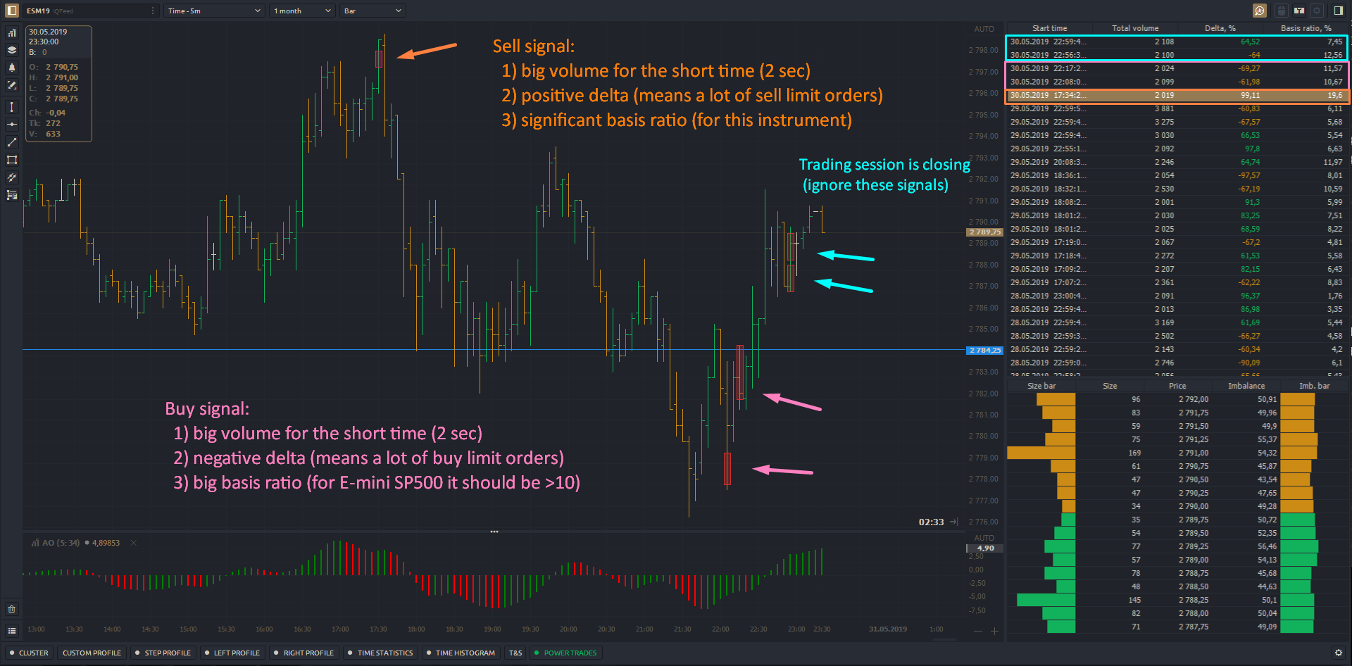 Using Power Trades you can see the execution of a large number of orders in a very short time, which will affect the price change with a high probability.