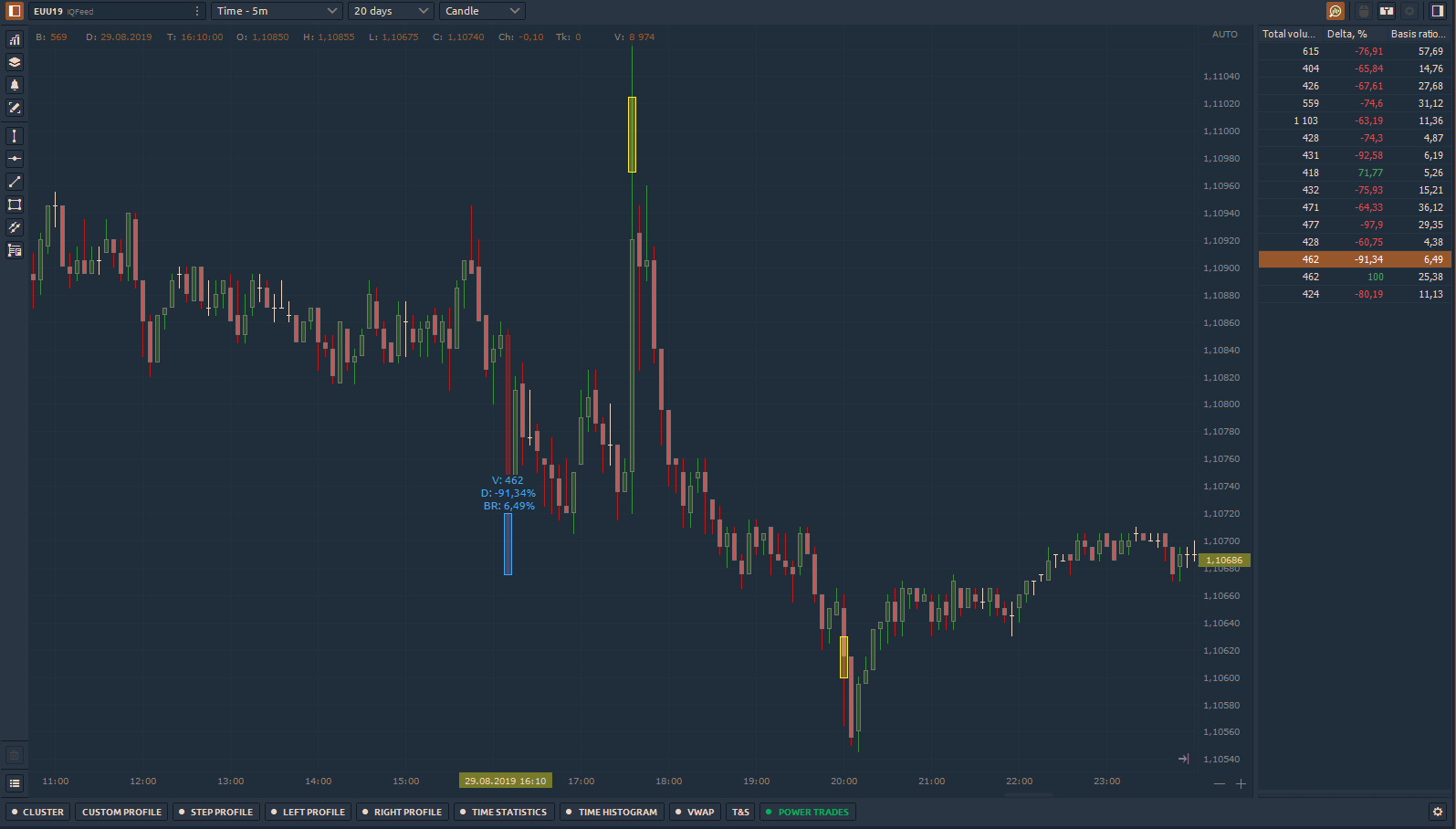 Power Trades shows the zones with the execution of a large number of orders in a very short time, which will affect the price change with a high probability. Let's take a look at a few examples.