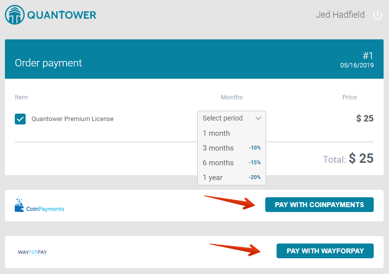 After that, you will be redirected to the provider’s payment page. Once you complete all the payment steps, you will be redirected back to the confirmation page of Quantower Accounts. Follow the GO TO DASHBOARD link to get to your Quantower Account dashboard, where you should see you current Core License information and Payment transactions history.