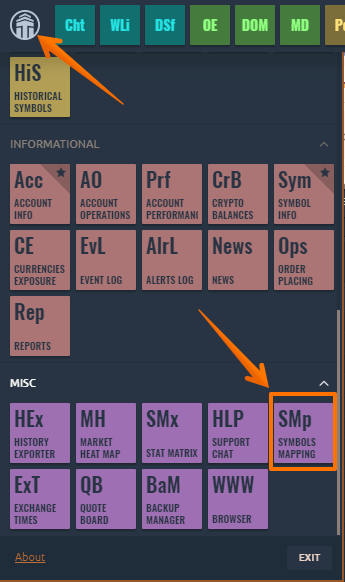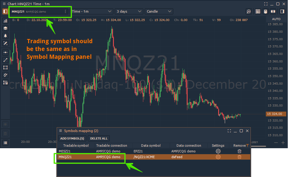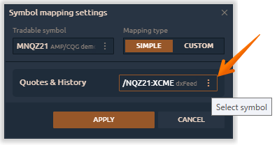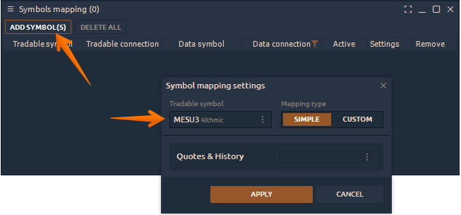 - After the mapping of symbols is set up, you need to open the trading panel with the desired symbol to start trading