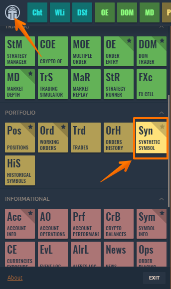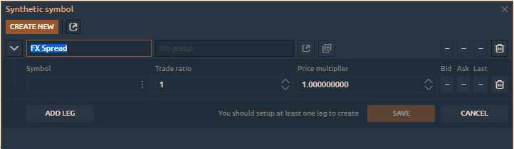 Synthetic Symbols panel allows to create any non-standard instruments (symbols) or spreads that you can both trade and use as an indicator of the current market situation or market divergences.
