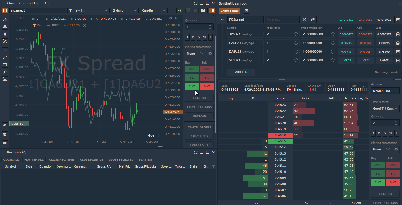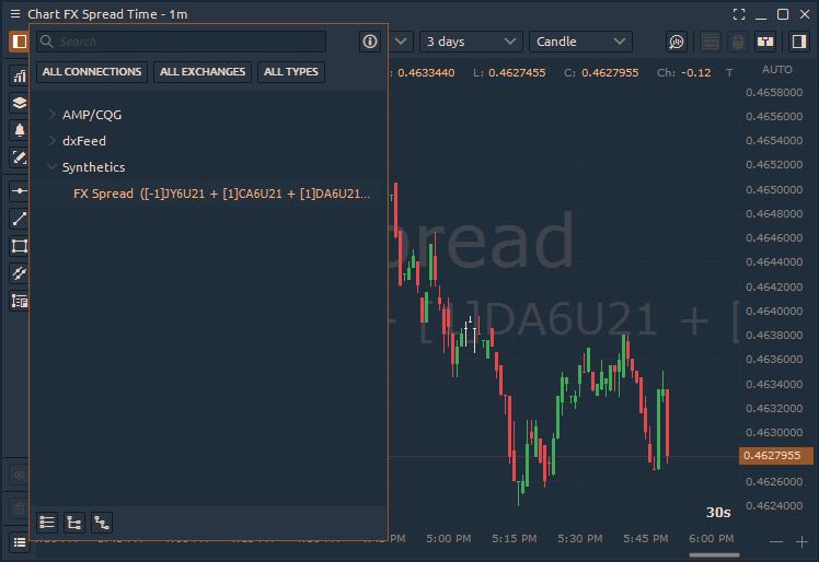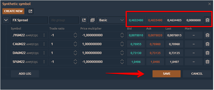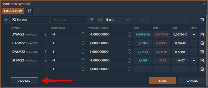 For example, let's build an FX spread with multiple forex pairs (we will use futures contracts on the CQG connection).