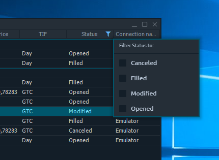 Data in table panels are organized in rows and columns, where each item’s (row) parameters are displayed in columns. Not all of the available columns are displayed by default in each table panel. We have selected the most popular and vital per panel and made an ability to modify the columns set as you like.