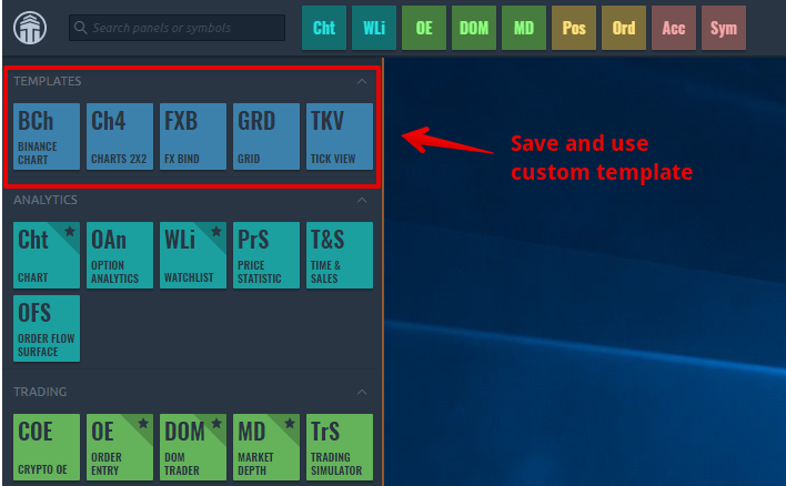 All of the created templates are stored in Control center sidebar, under the “Templates” group. So you can launch any template from this place any time you wish. You can put the saved templates on the Favorites bar of Control center, like any other default panel.