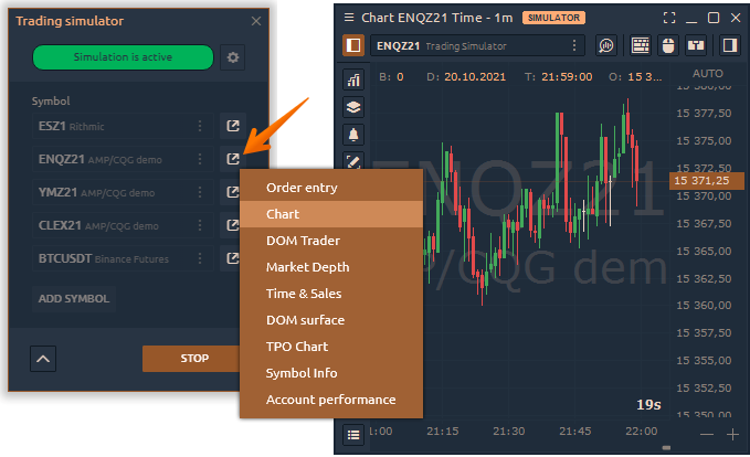 Trading Simulator is a specially designed trading tool that allows emulating the execution of orders for any connection, including those that do not allow trading.